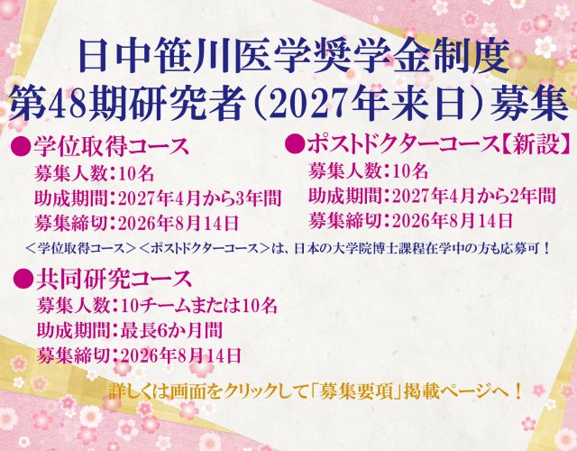 日中両国の優れた研究者が共同で行う研究への支援と、次代を担う中国の若手研究者の日本での育成を目的としています。〈中国国内で募集〉
