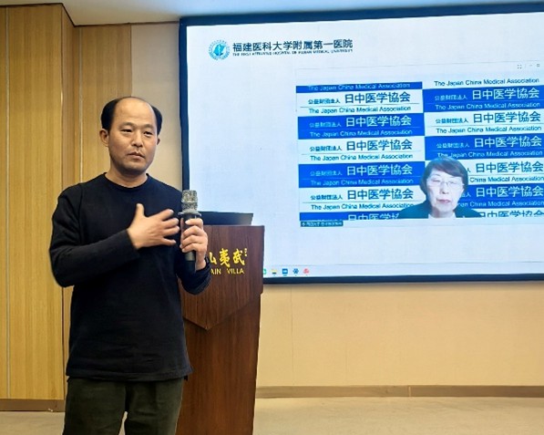 学术交流会刚开始,由协会冈田光子事务局长、福建地区代表福建省药品不良反映观测中心李宗先生(12期)、华东地区代表江苏省中医院孙伟先生(18期)致辞。